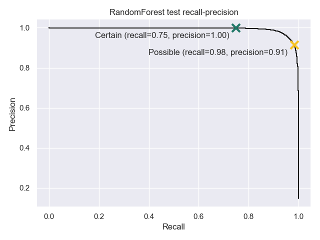 Our second threshold aims for a precision > 0.9, gives us “possible” edges.